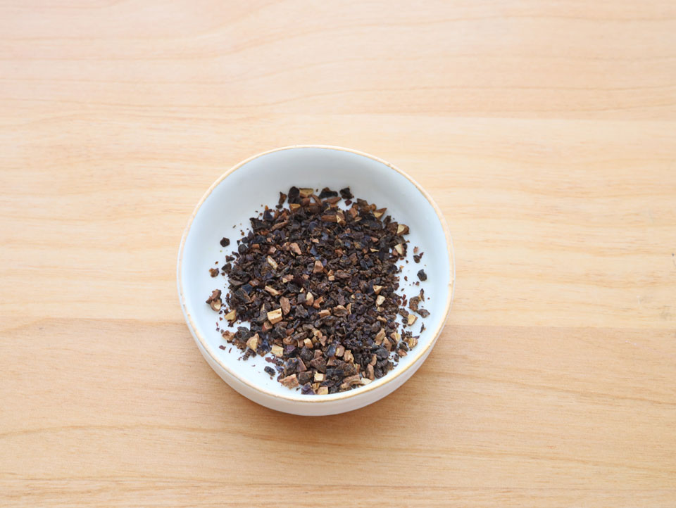 その実を40~60度の低温でじっくりと乾燥させ、種ごと粉砕してお茶にしています。